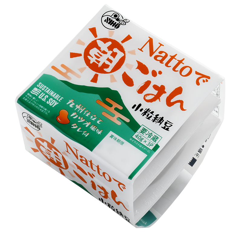 アメリカ産サステナブル認証の小粒大豆使用。九州仕立てカツオ風味タレ付きのスタンダード商品。